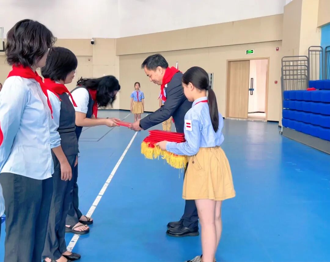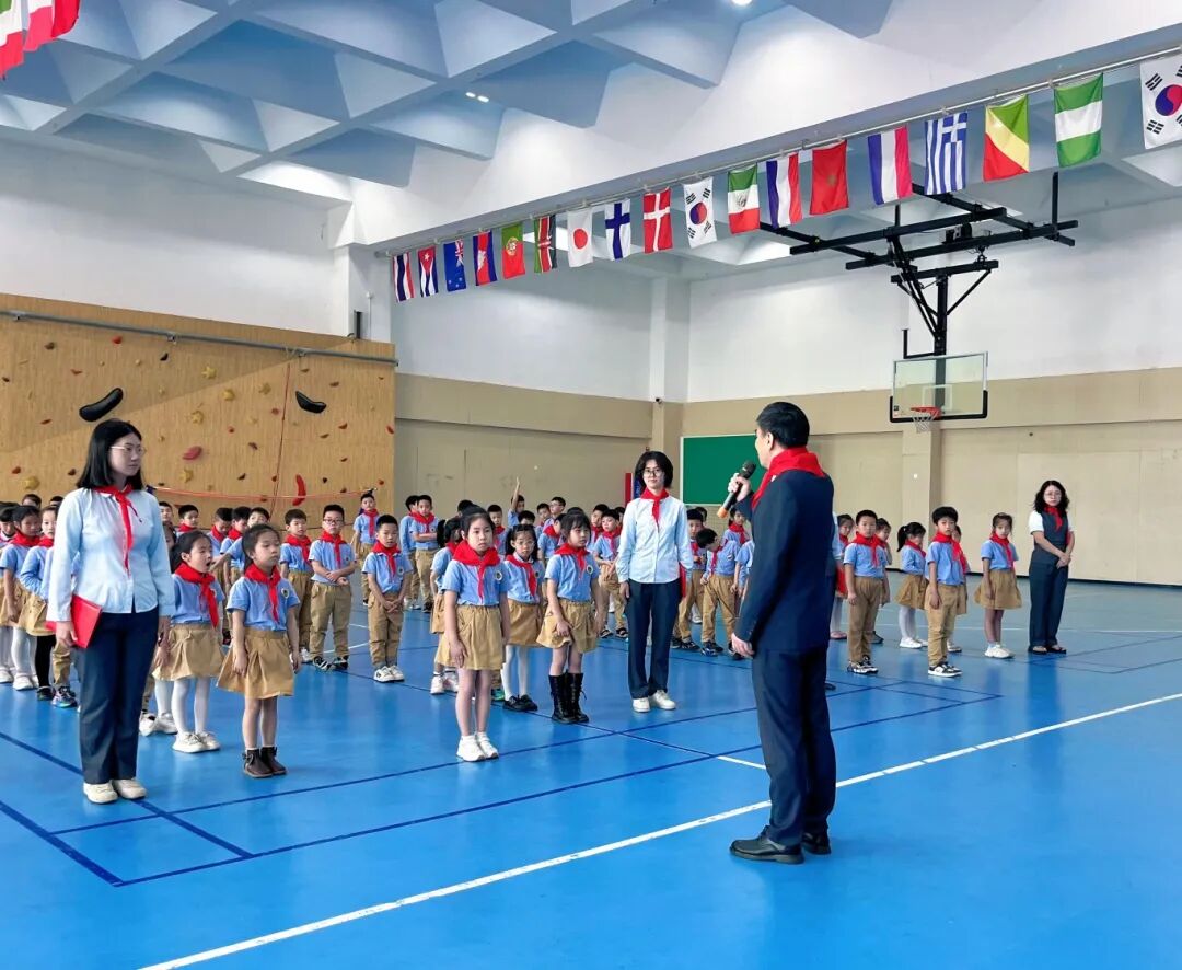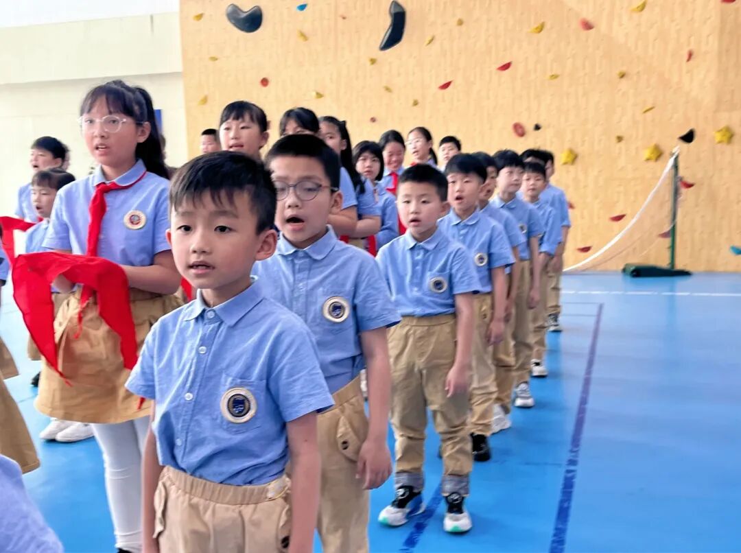 为深入贯彻落实《中共中央关于全面加强新时代少先队工作的意见》,传承中国少年先锋队的光荣传统,加强学校少先队组织建设,增强少先队员的组织归属感,5月30日上午,泉州市洛江区外国语学校小学部隆重举行了“牢记党的教导 争做强国少年”入队仪式 。这场仪式意义非凡,它不仅是新队员们成长路上的重要里程碑,更是学校少先队工作的一次生动实践,激励着每一位队员在星星火炬的指引下,努力成长为新时代的强国少年。