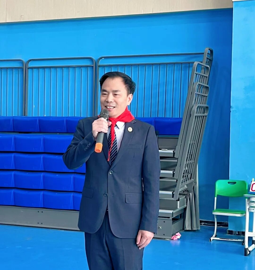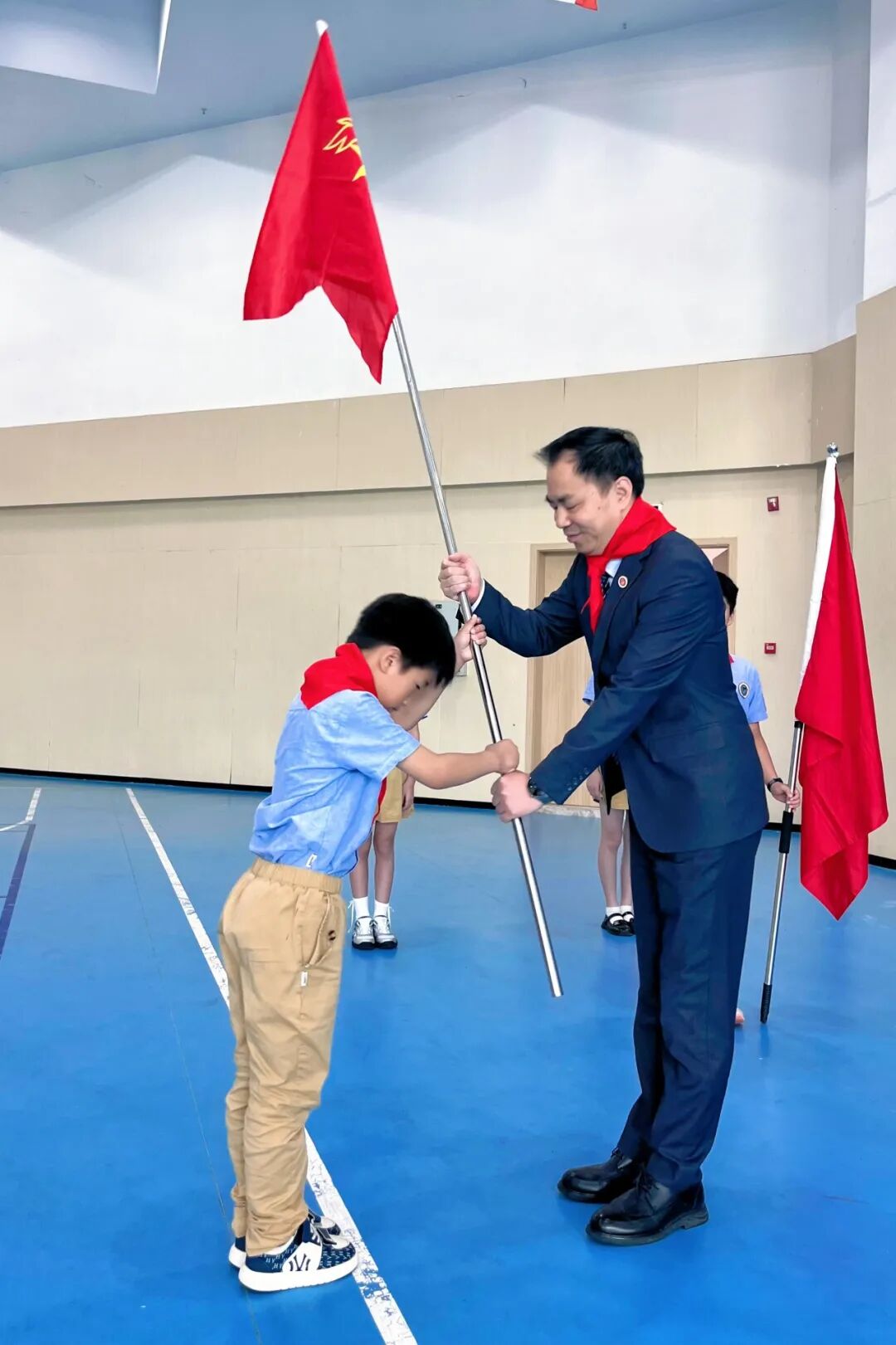 校少工委主任林建生校长为一年级中队授中队旗。一面面中队旗在风中飘扬,象征着一个个充满活力与希望的中队正式成立。队员们接过队旗,心中充满了使命感,他们将在队旗的引领下,团结一心,积极向上,开展丰富多彩的中队活动。