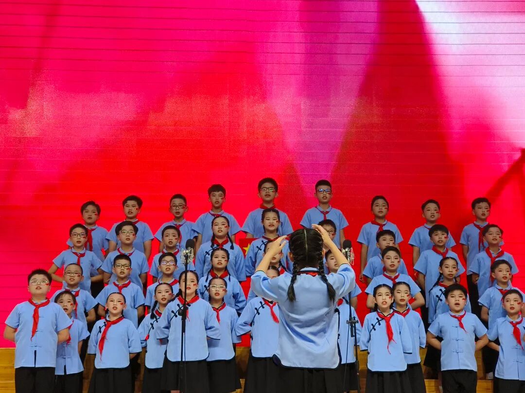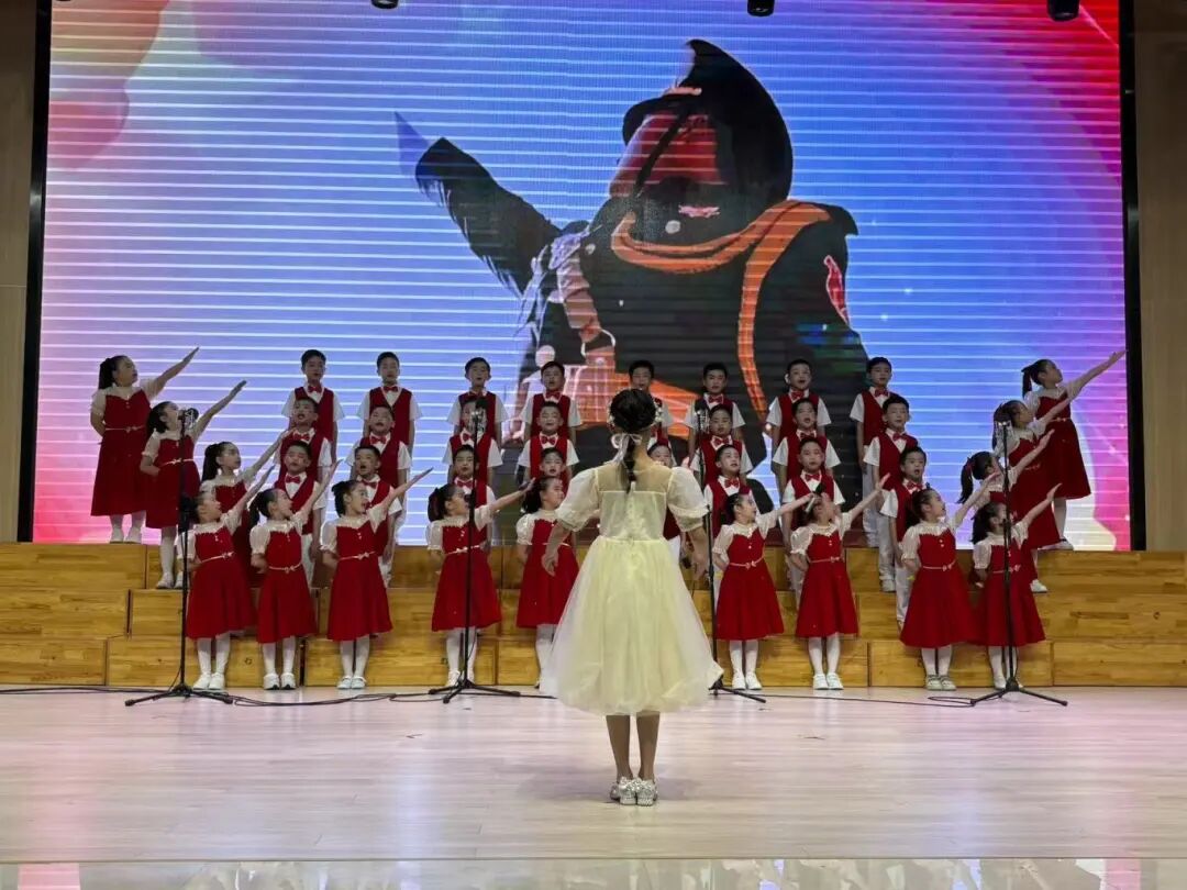 高段的同学们则以更加成熟的演唱技巧和饱满的精神状态,为大家带来了一场高水平的视听享受。《我和我的祖国》《歌唱祖国》等歌曲,在他们的演绎下,气势磅礴,唱出了对祖国的深情祝福和对未来的美好憧憬。一些班级还融入了朗诵、乐器伴奏等元素,使表演更加丰富多元。