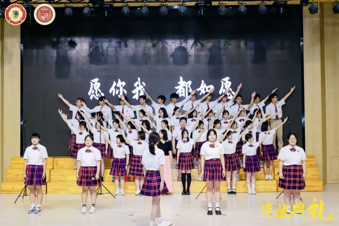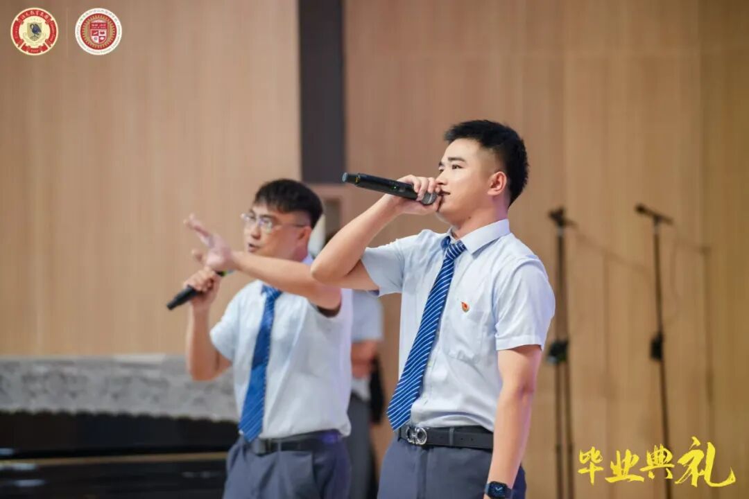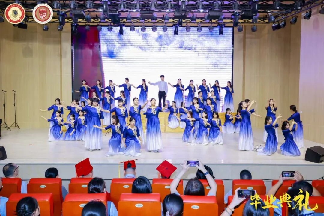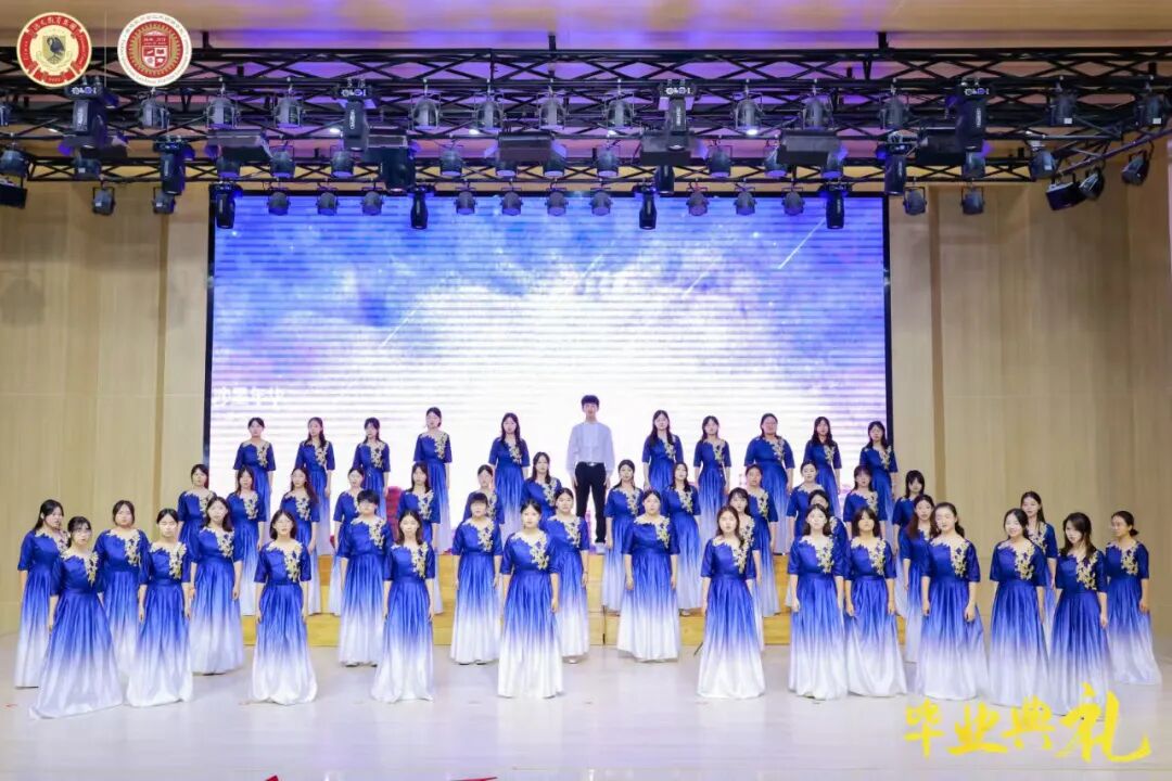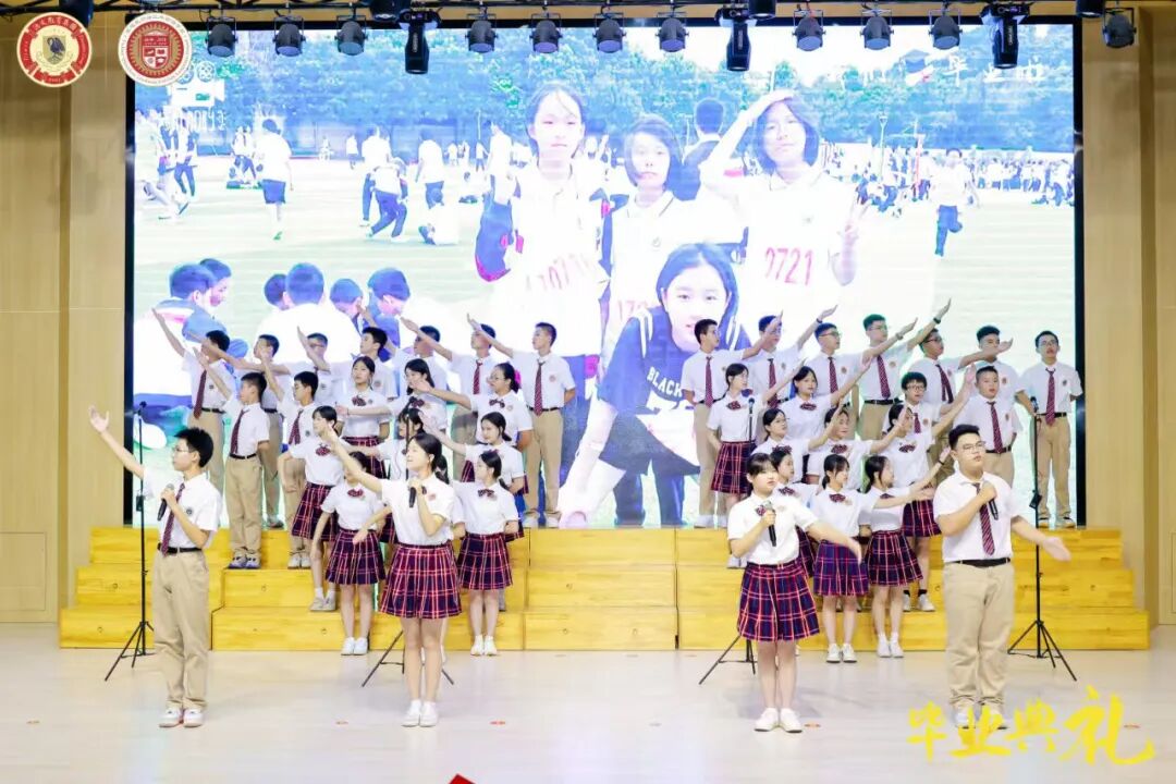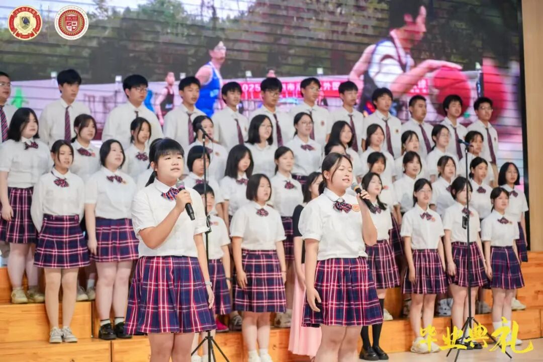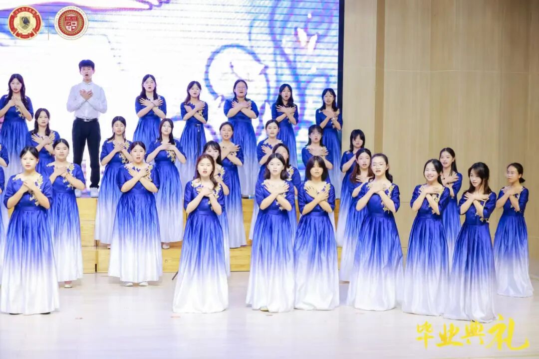 同学们齐唱校歌,词曲中的铿锵是三年来奋斗的炽热,歌声中的深情更有此去繁花似锦的笃定。