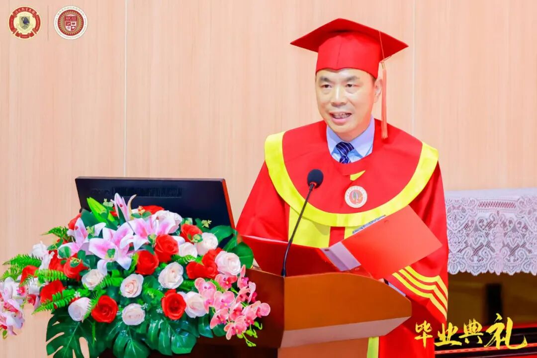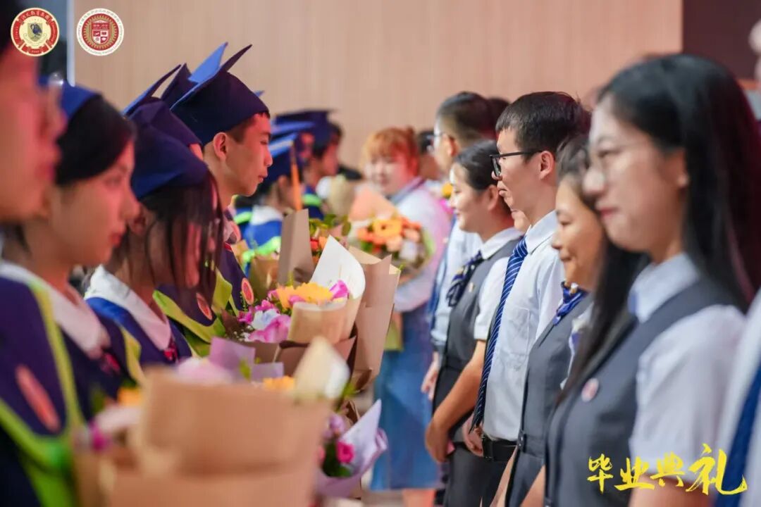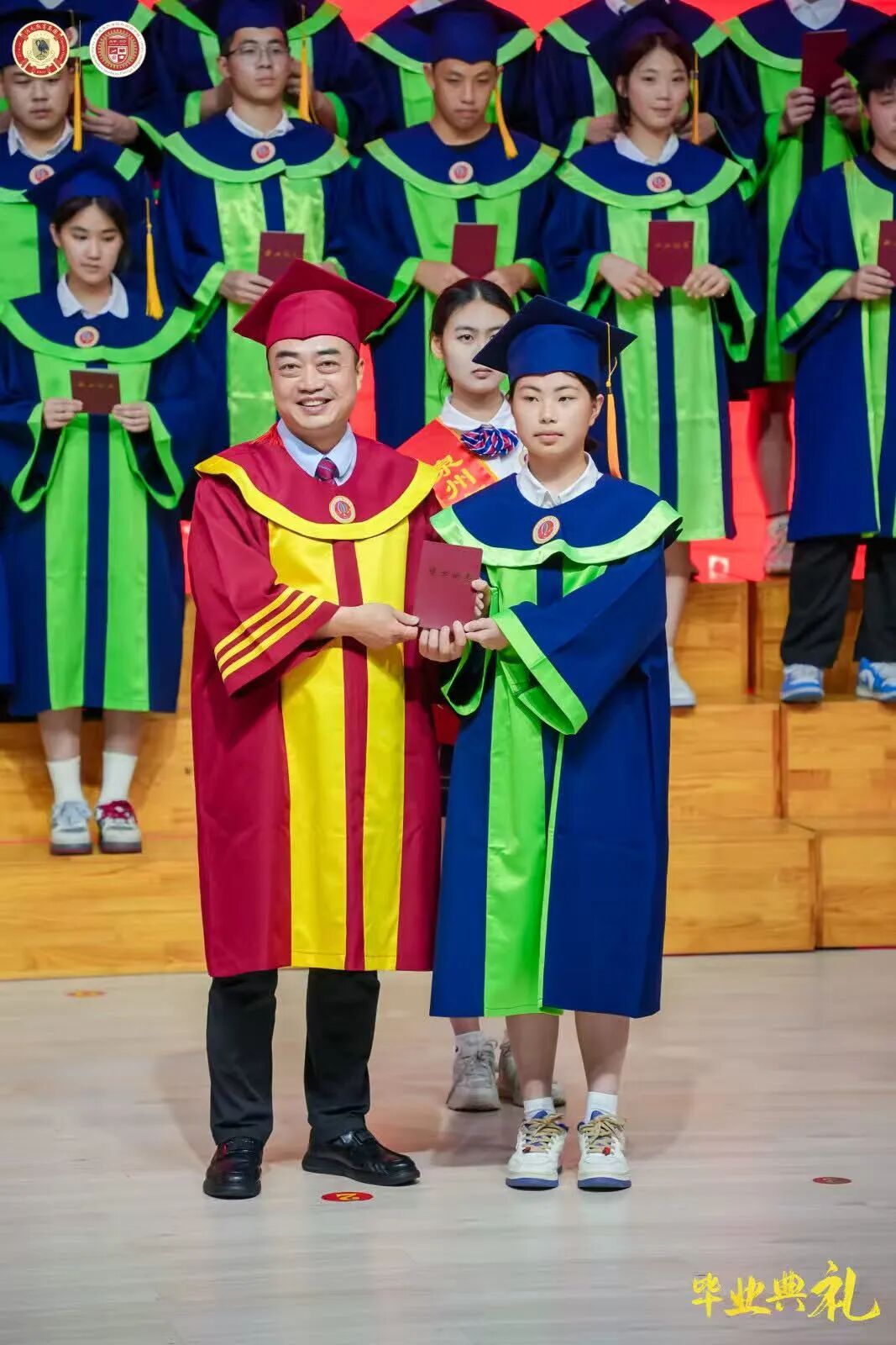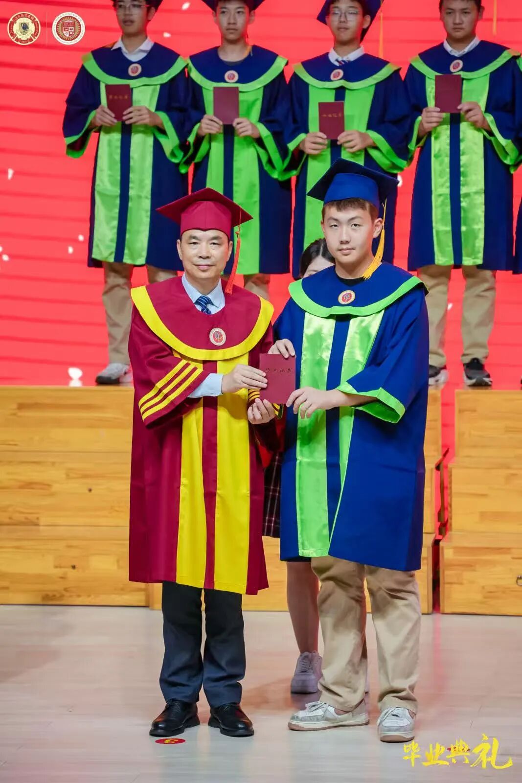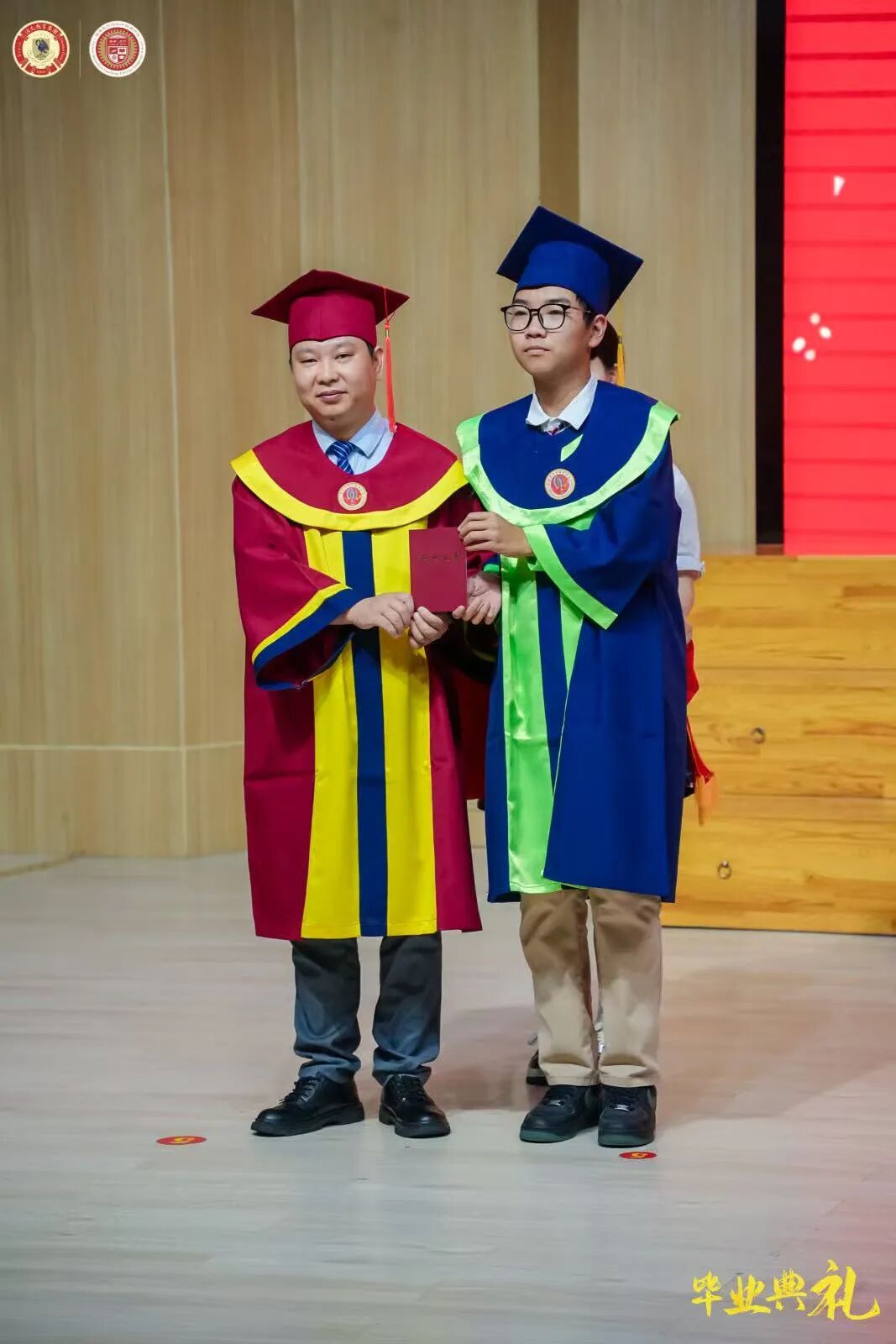 李雄虎执行董事、王贵斌校长、林建生校长、姚玉铭副校长、小学部潘振平校长为每位毕业生拨穗正冠,颁发毕业证书,愿孩子们学有所成,展翅高飞。