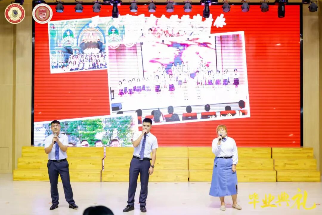 2025年6月22日晚19:00,泉州市洛江区外国语学校董事会执行董事李雄虎先生、德文教育集团常务副总裁陈敏希女士,德文教育集团副总裁陆浩先生、德文教育集团副总裁沈娇梅女士、德文教育集团副总裁林文质先生、福建泉州外国语学校王贵斌校长、泉州市洛江区外国语学校林建生校长及全体校务委员、全体初三毕业班师生、家长欢聚典礼现场,共话毕业情思,见证学子的荣耀时刻。