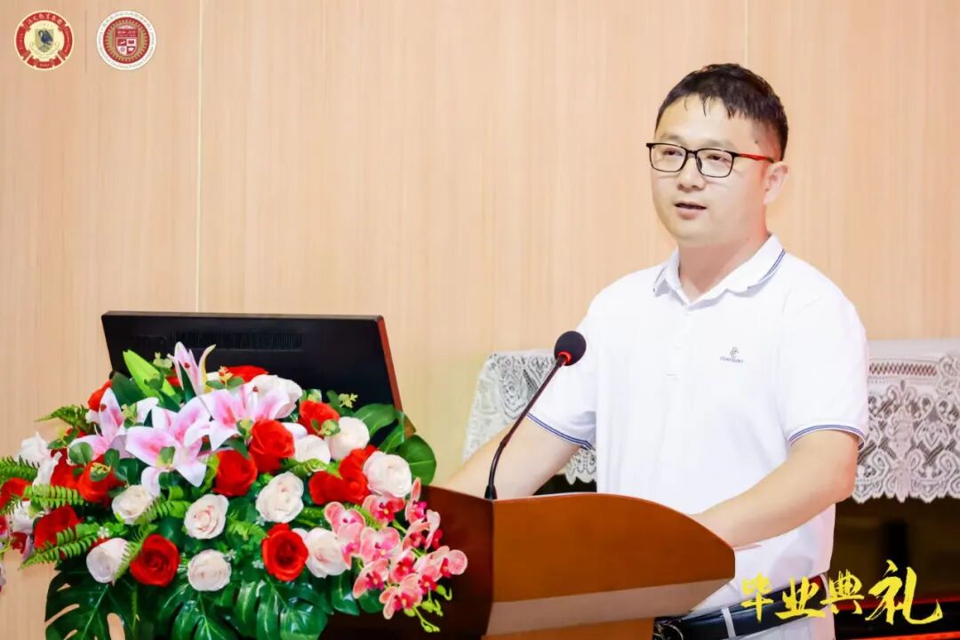 有一种爱,沉默如山,有一种恩,深厚似海。初三家长代表张飞海先生的发言质朴而深情,向学校领导和老师们表达衷心的感谢和崇高的敬意,感谢他们为孩子们成长倾注的爱心、汗水和智慧,勉励学子们铭记恩师教诲,乘风破浪,一路前行,创造自己的锦绣未来!