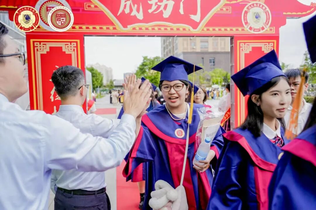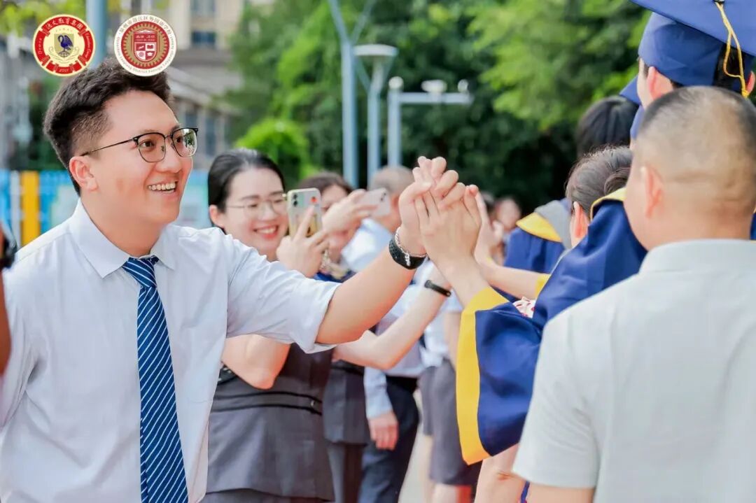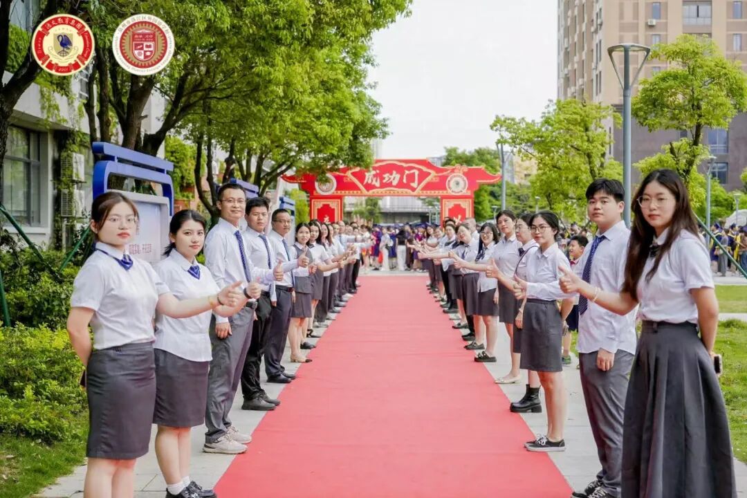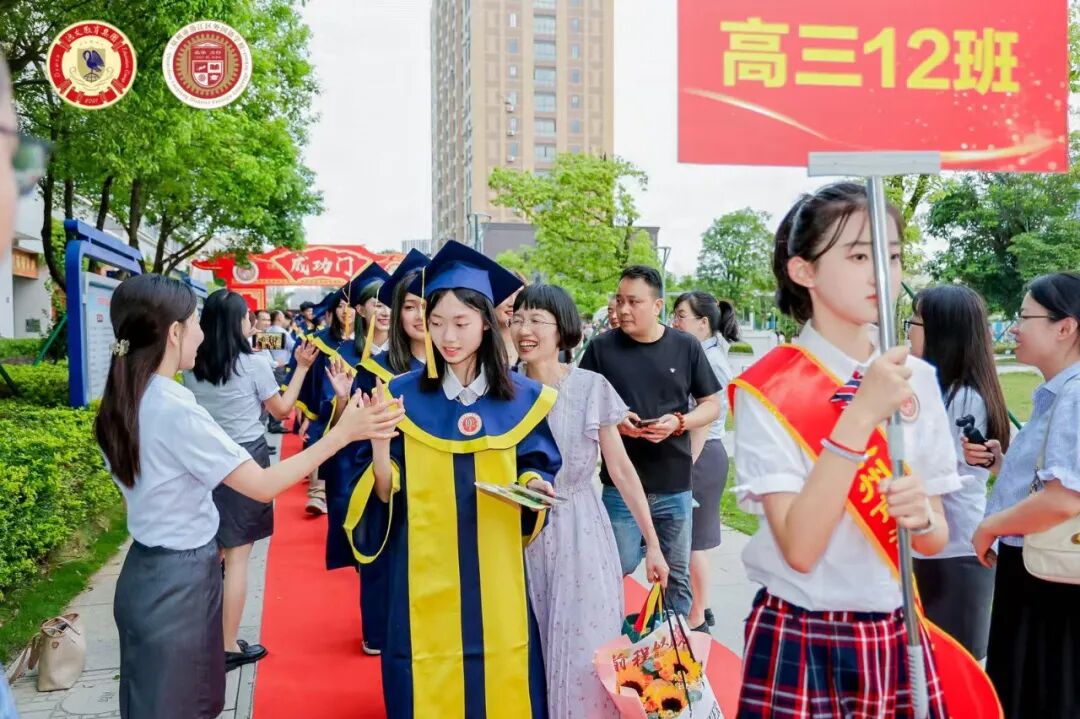 全体校级领导、高三教师分列“成功门”两侧,以掌声与拥抱迎接学子跨越象征成长与责任的红色拱门。毕业生们踏过红毯,在欢呼声中完成从青涩少年到时代青年的蜕变。