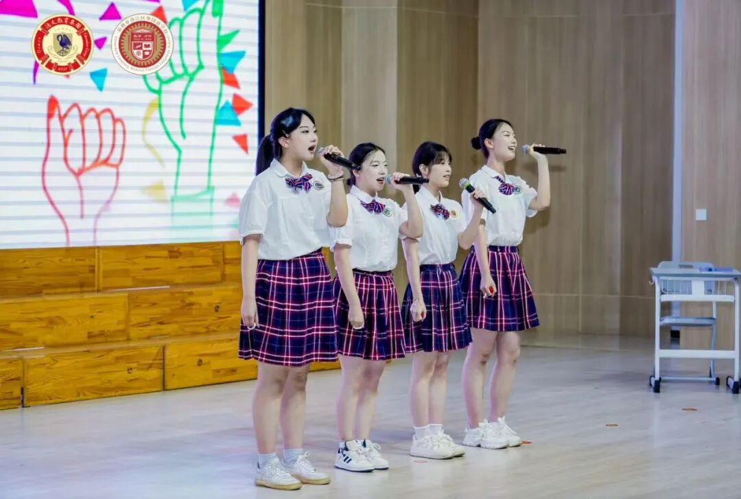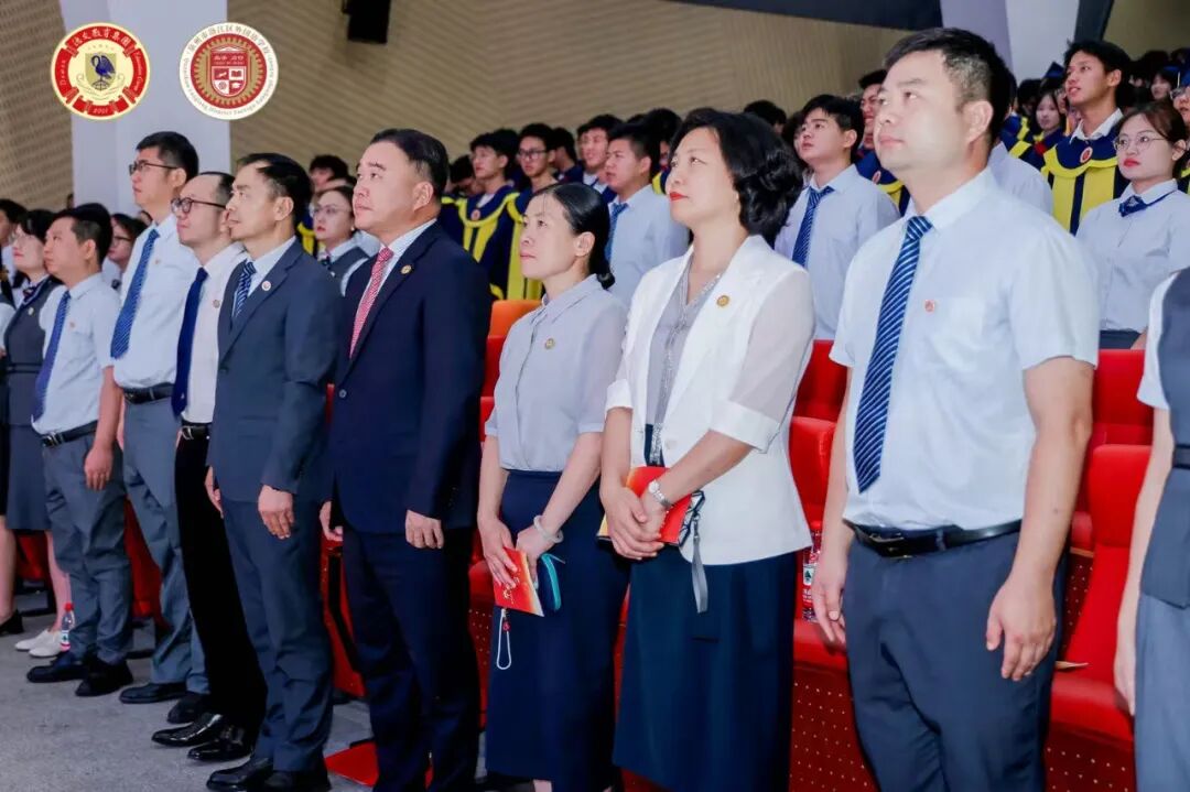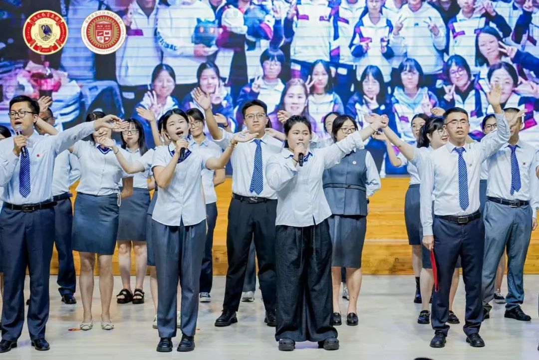全体师生以校歌相和,用最清澈的嗓音编织祝福的经纬,以最炽热的情感奏响期许的乐章。