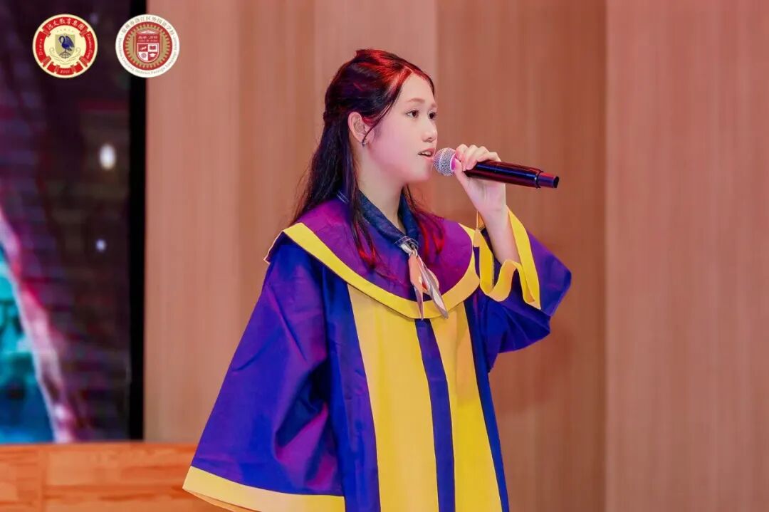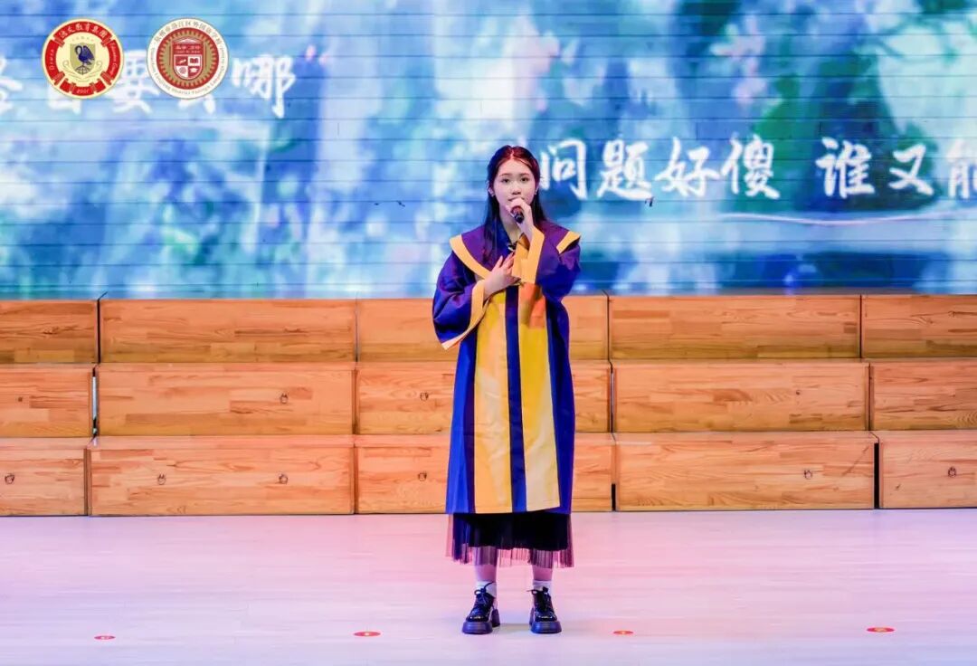 “曾以为高三是题海无涯,后来才懂得每道错题都是通往梦想的铺路石。”高三毕业生代表康蕾同学回顾高中三年的点点滴滴,三年征途,千余日夜,她的言语间充满了对老师的感恩,对同学的情谊,对母校的眷恋,未来将带着爱与期待,以最坚定的信心、最饱满的姿态迎接新挑战。