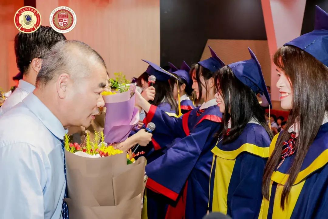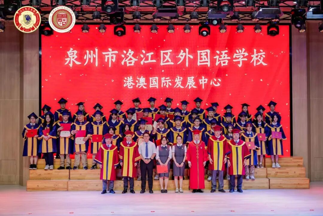 2025年6月11日晚19:00,泉州市洛江区外国语学校2025届高三毕业典礼暨毕业证书颁发仪式在国学大讲堂隆重举行。泉州市洛江区外国语学校董事会执行董事李雄虎先生、德文教育集团常务副总裁陈敏希女士,德文教育集团副总裁陆浩先生、德文教育集团副总裁沈娇梅女士、泉州市洛江区外国语学校林建生校长及全体校务委员、全体高三毕业班师生、家长欢聚现场,共同见证洛外学子阔步新征程。
