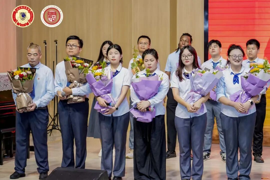 春风有情,花开有声。学生代表上台为全体毕业班老师及领导献上鲜花。