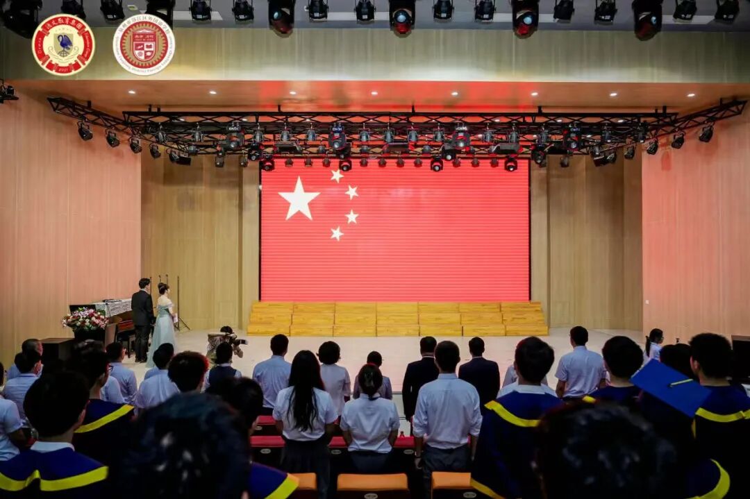 雄壮激昂的国歌响起,全体人员肃立,齐唱国歌,在庄重热烈的气氛中,典礼正式开始。最熟悉的音符,最庄严的时刻!泉州市洛江区外国语学校正孕育一树花开,少年在青春里拔节生长。学子们最后一次在校奏唱国歌,鲜衣怒马的少年们,将踏上另一艘船驶向远方,真正担当起未来的使命。