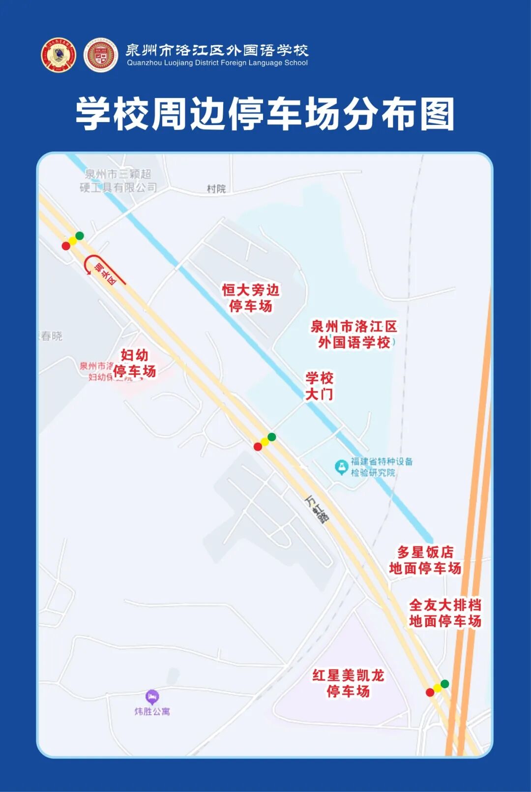 家长接送车辆可提前停至学校附近附近红星美凯龙、全友大排档地面、多星饭店地面、恒大旁边、洛江妇幼等停车场,再短暂步行接送。