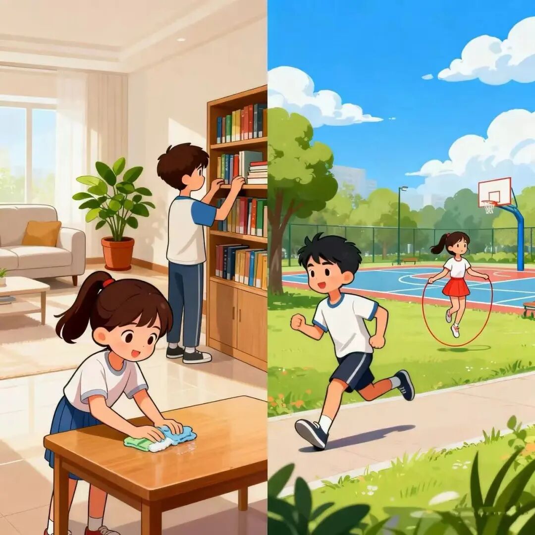 3、合理安排好作息时间。保持有规律地生活、学习,教育和引导孩子既要主动完成好假期自主学习任务,亦要劳逸结合。在确保安全的情况下,多进行一些健康有益的体育活动,不要沉迷于电视或网络。