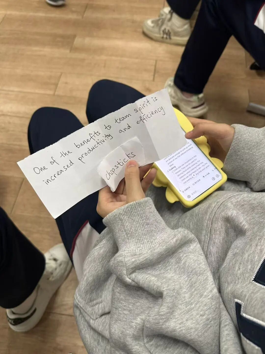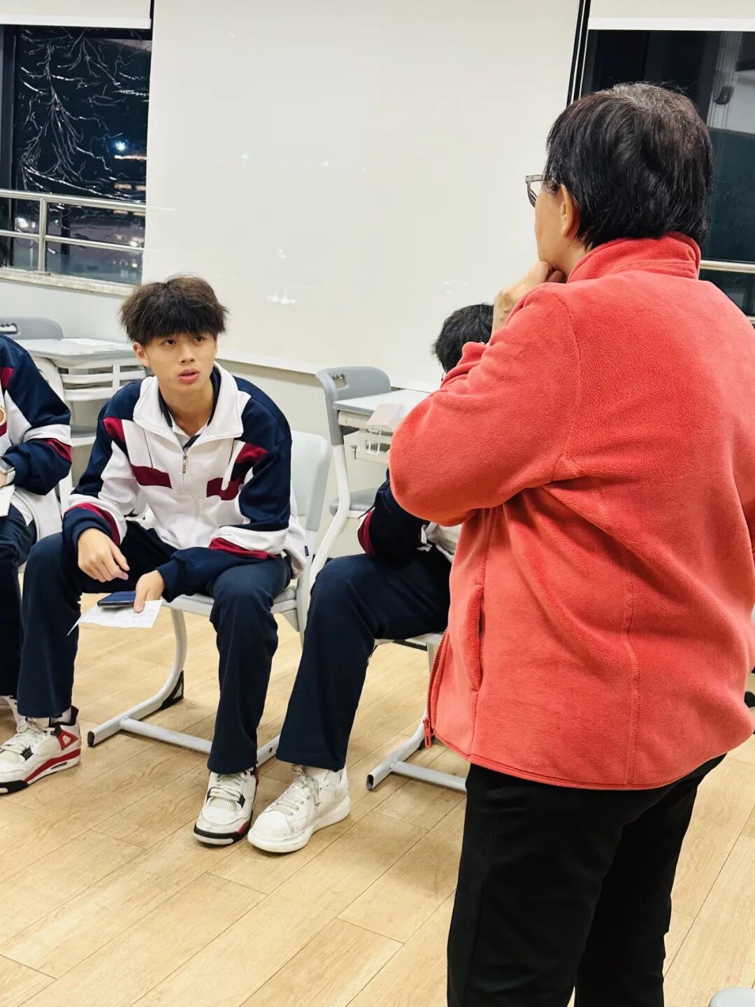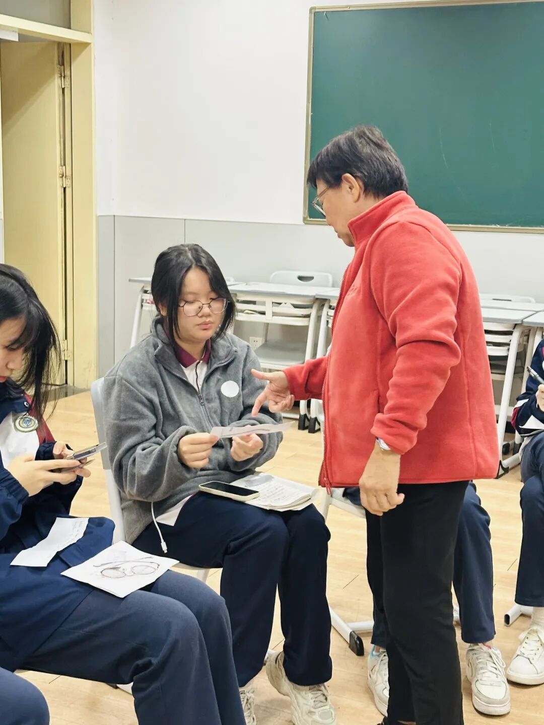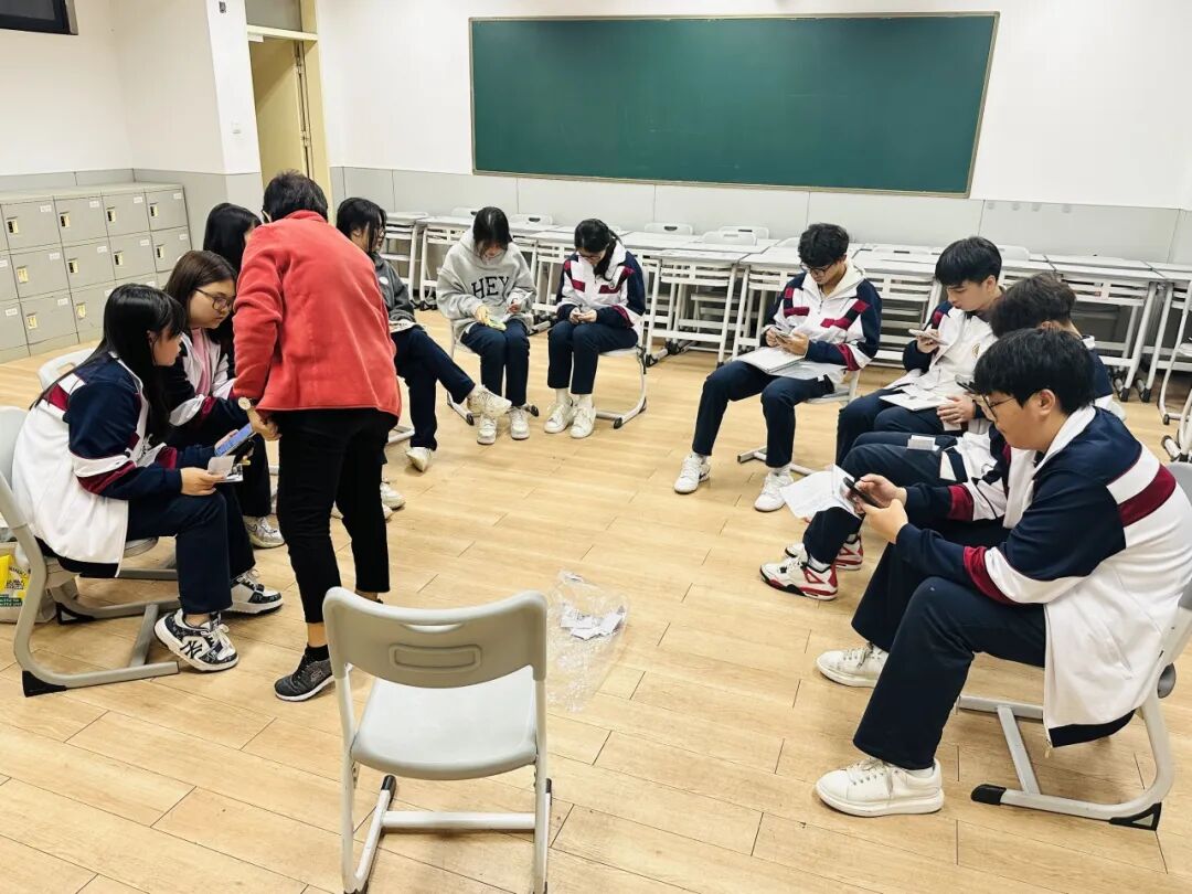 外教准备了一些小纸片,同学们随机抽取。围绕抽中的话题展开讨论。